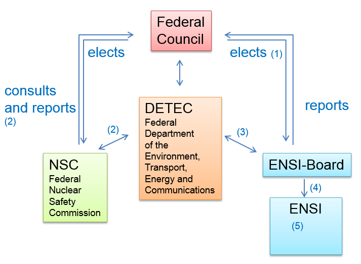 (5) ENSI’s Executive Board is responsible for the management of business, organisation and other personnel decisions. It manages ENSI and represents the Inspectorate in dealings with the public. It takes decisions on safety-related matters.